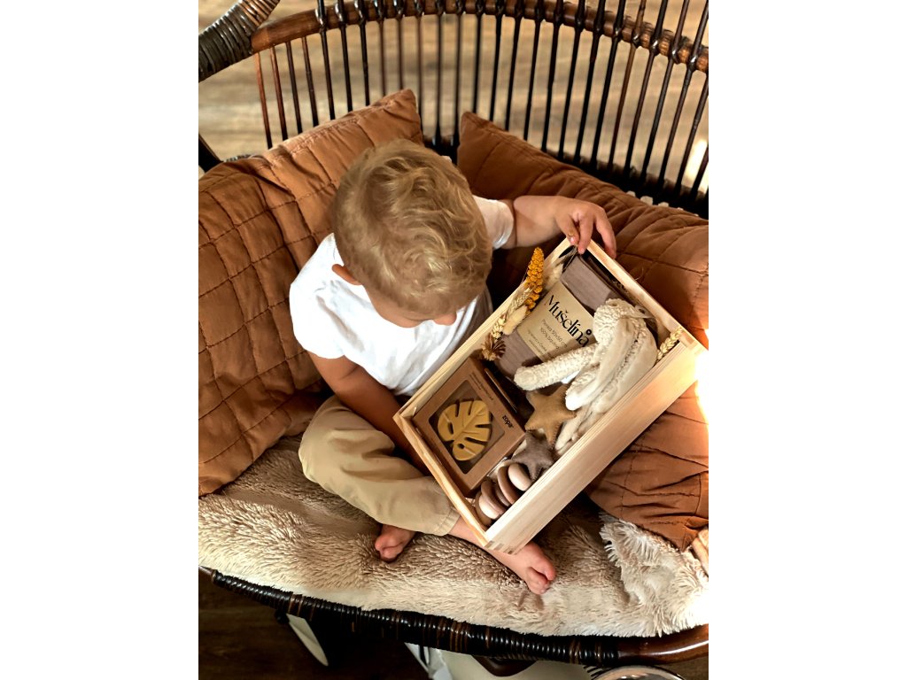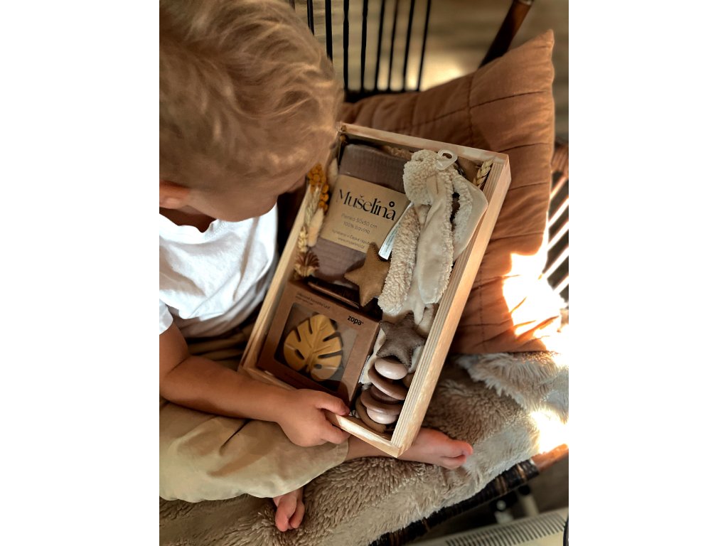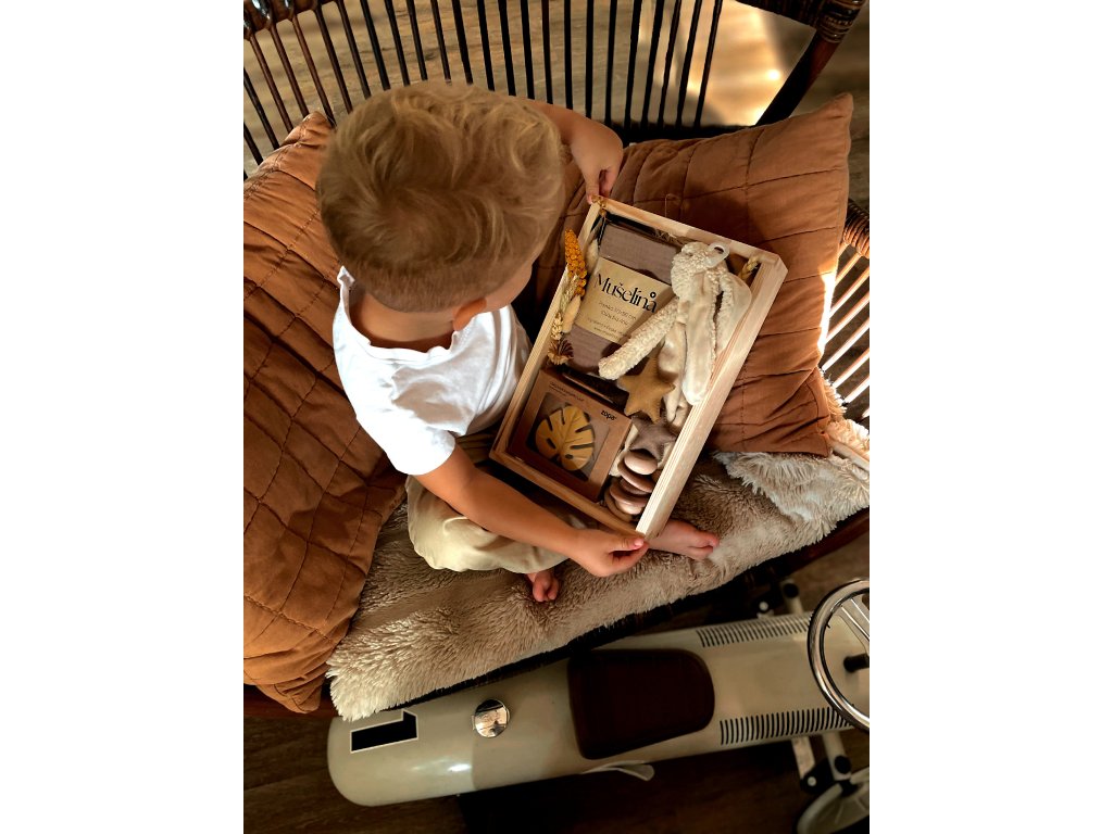 Něžný a přirozený dárkový balíček pro miminko. Vhodný jak pro holčičku, tak pro chlapečka. Ideální jako dárek k narození, na první návštěvu nebo jen tak ⭐